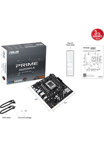 Asus Prıme A620AM-K Amd A620A Am5 Ddr5 7600 Dp HDMI M2 Usb3.2 Aura Rgb Matx 6+2+1+1 Güç Aşamaları, 128GB?A Kadar Ram Desteği, Asus 5x Protectıon Iıı