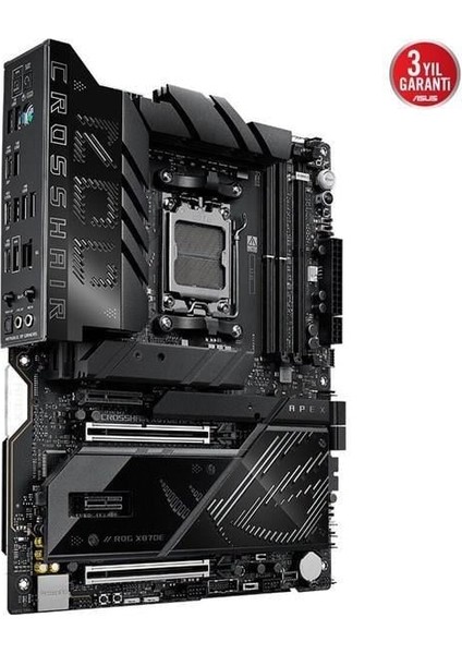 AMD X870E (AM5 Soket) ATX anakart, Gelişmiş Yapay Zeka Bilgisayarları için Hazır, 18+2+2 güç aşaması, Dynamic OC Switcher, Core Flex, AEMP ile DDR5 yuvası, DDR5 hız aşırtma için ROG Bellek Fan Kiti, ASUS WiFi Q-Antenna ile Wi-Fi 7 , üç adet PCIe® 5.0 dahili M.2 yuvası, ROG DIMM.2 kartı üzerinde iki adet PCIe 4.0 yuvası, PCIe® Slot Q-Release Slim ve yeni ekran kartlarına tam destek ile PCIe® 5.0 x16 SafeSlots, iki adet USB4® bağlantısı, iki adet USB 20Gbps Type-C® ön panel bağlantısı (biri Quick Charge 4+ ile 60W?a kadar şarj ve USB Voltaj İzleyici), AI Overclocking, AI Cooling II ve AI Networking II